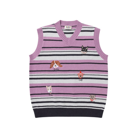Make your wardrobe fun and stylish with this striped embroidered sleeveless sweater vest.