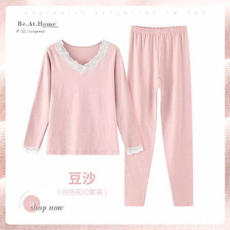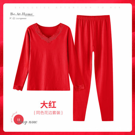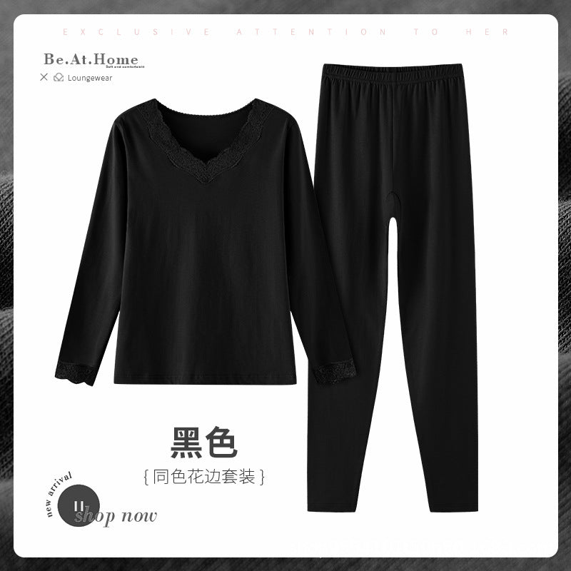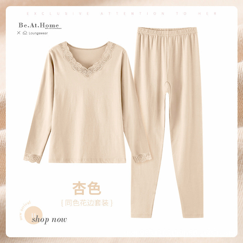 This thermal pants suit is perfect for everyday wear, lounging, or as a stylish thermal base layer. The soft cotton fabric and breathable design ensure warmth without sacrificing comfort, while the contrast lace adds a fashionable touch.