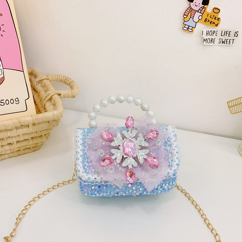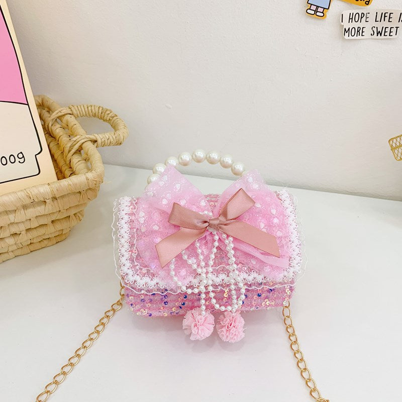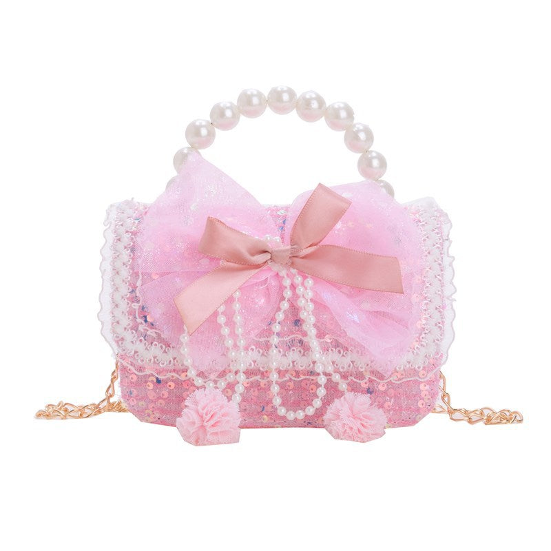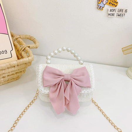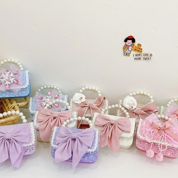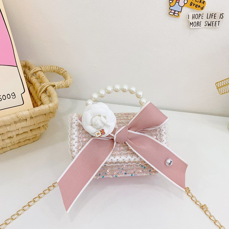 Korean-Style Bow Camellia Kids’ Pearl Crossbody Bag