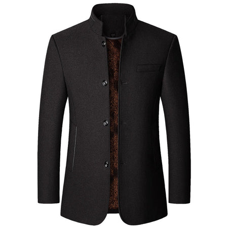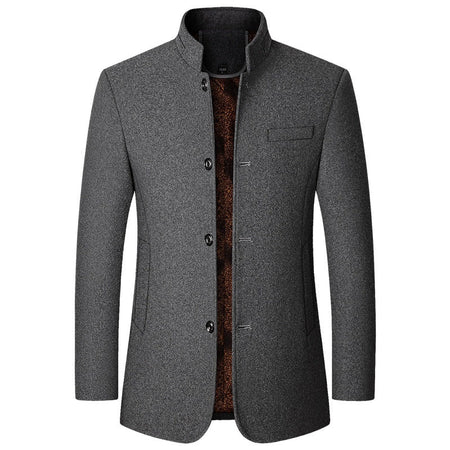 Middle-Aged Men’s Woolen Coat – Thick Winter Fleece-Lined Casual