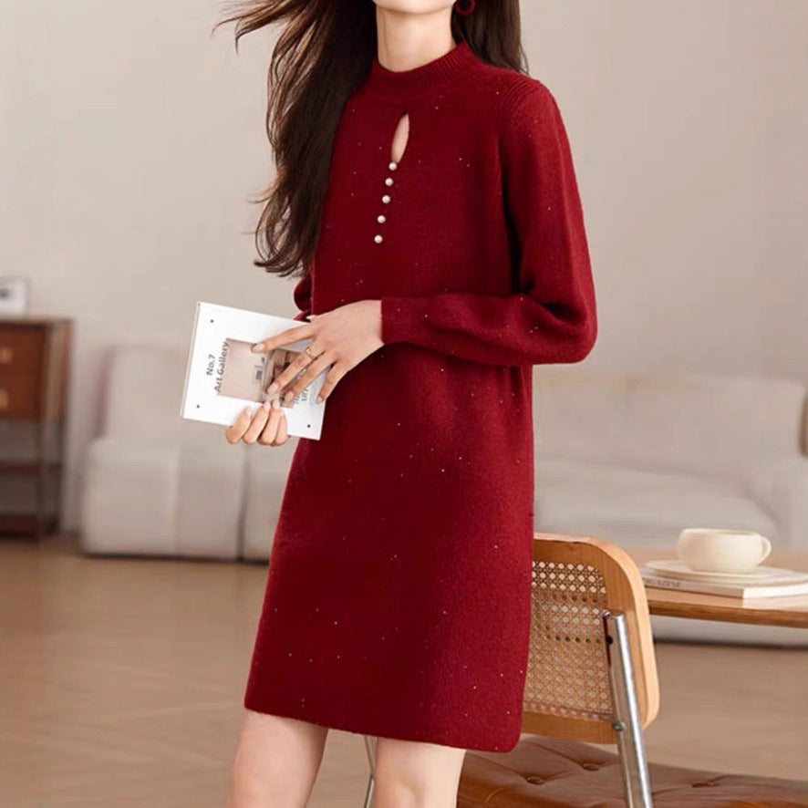 High Neck Knit Sweater Dress