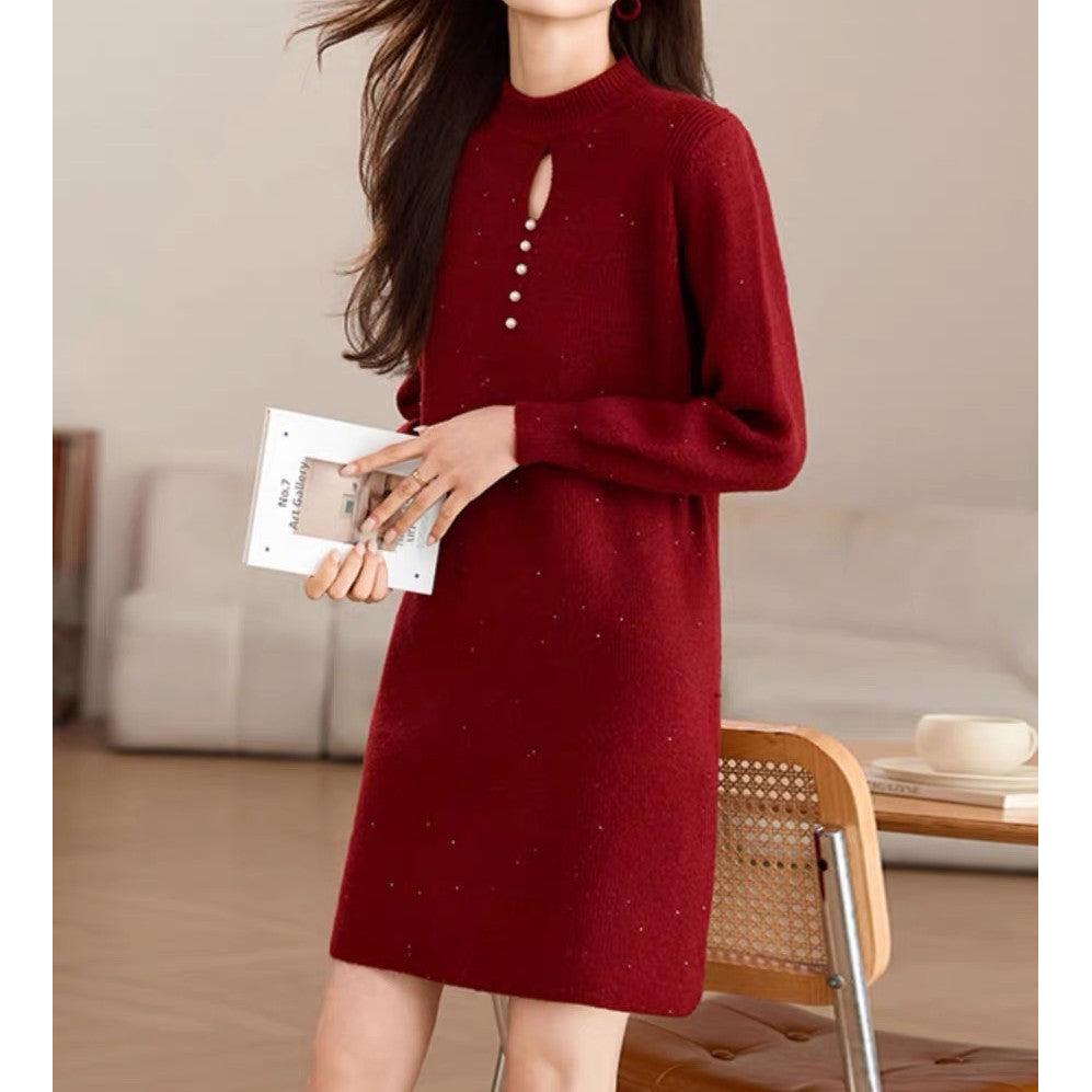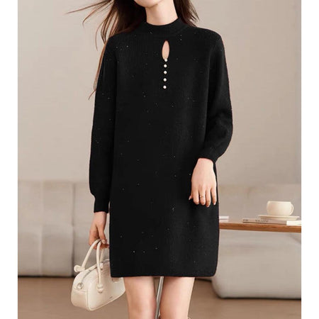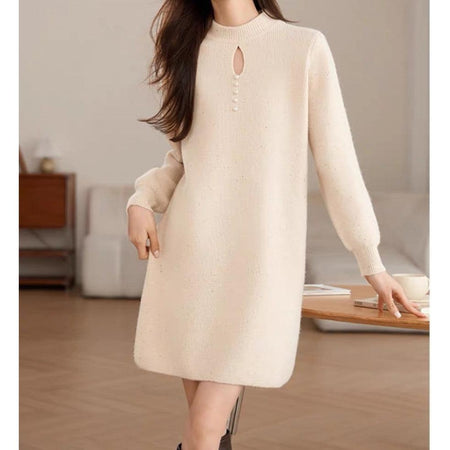 Embrace the cozy-chic vibes of autumn and winter with our bright silk high-neck mid-length knitted sweater dress – a perfect blend of warmth, comfort, and elegance 🌸. Inspired by high-end Korean fashion, this piece is designed for women who want effortless sophistication while staying snug in the chilly season ❄️.