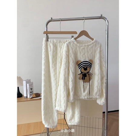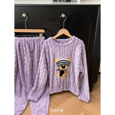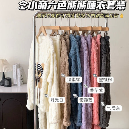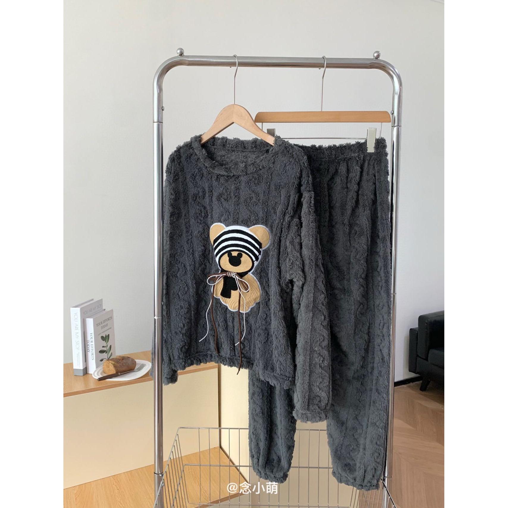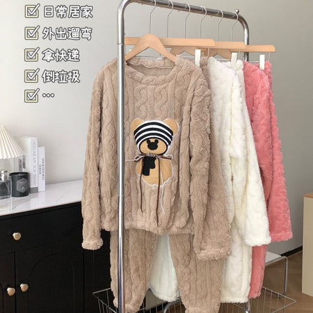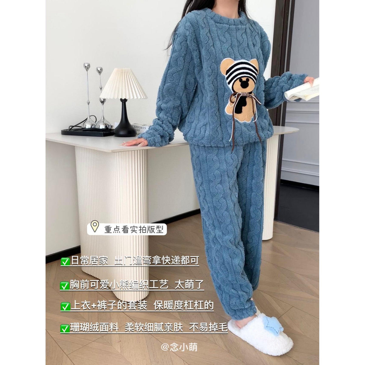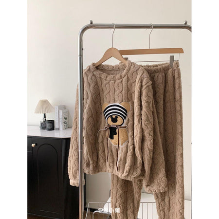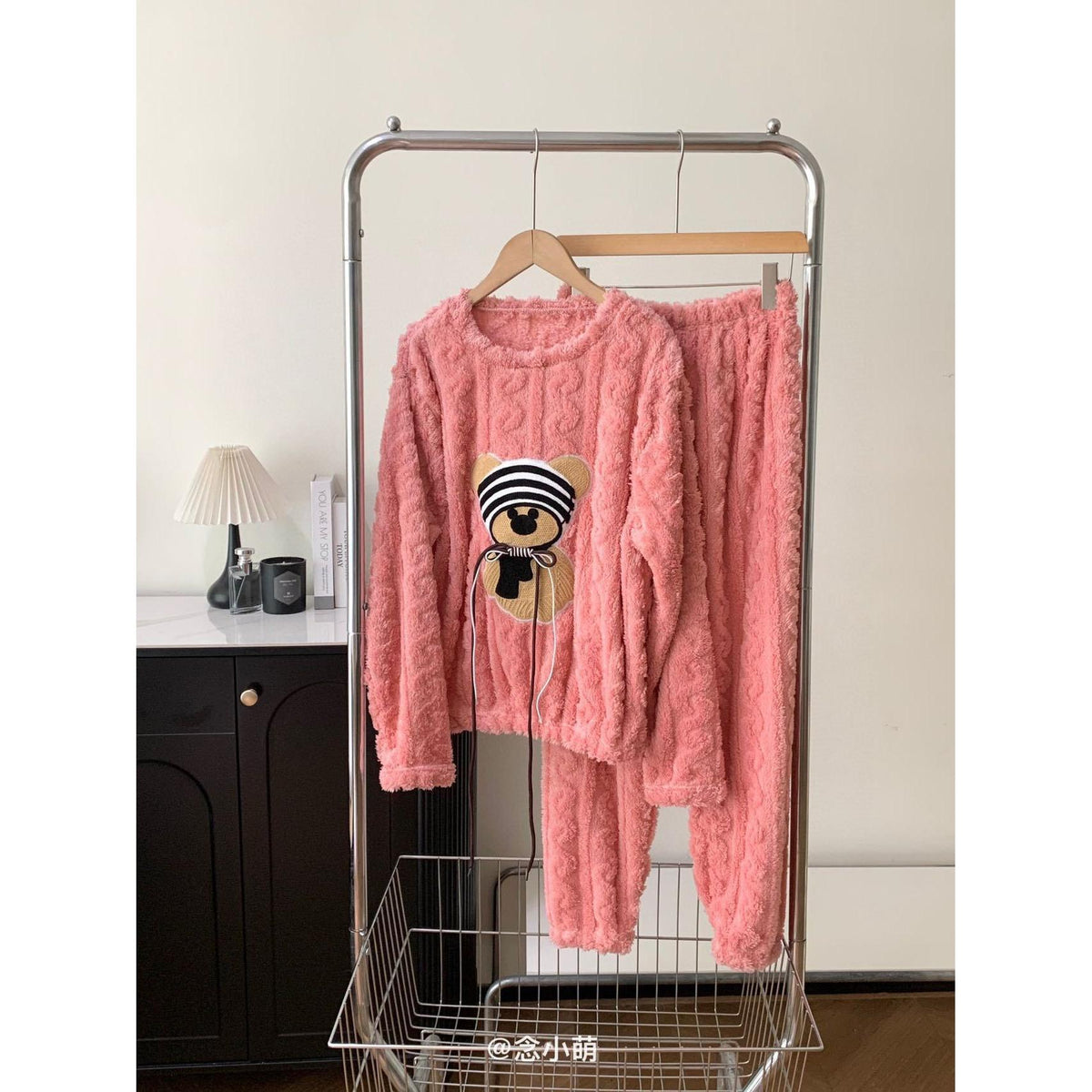 Add a cute touch to your nightwear with this coral fleece cartoon bear pajama set 🐻💖