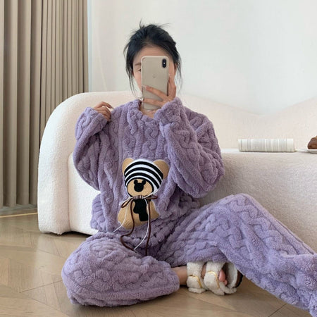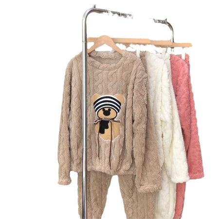 Women’s Coral Fleece Cartoon Bear Pajama Set