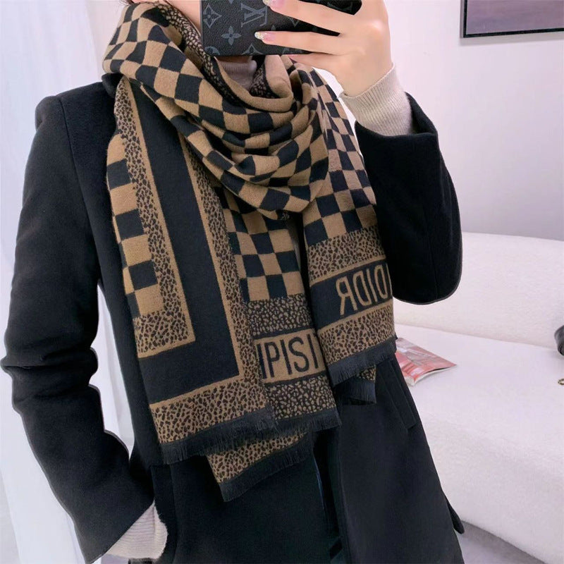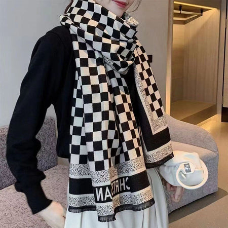 Add a trendy twist to your winter look with the Women’s Letter Print Cashmere Scarf, a K-style inspired accessory designed for warmth and style. Its checkerboard design pairs effortlessly with casual and chic outfits alike.