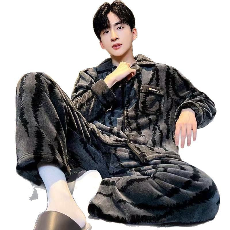 Stay snug all season with this men’s coral velvet pajama set, built for autumn and winter warmth. Thickened with plush flannel fabric, it’s designed for home comfort yet stylish enough to wear outside.