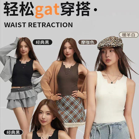 Keywords: women’s warm vest Nepal, autumn winter slim-fit vest, fixed cup base layer, sleeveless thermal vest, one-piece thermal vest, fake two-piece vest, winter women’s innerwear