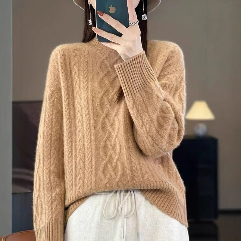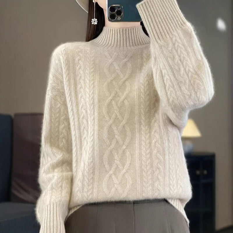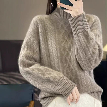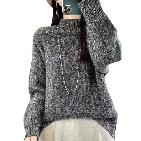 Women’s Half-High Collar Sweater – Elegant Loose Knit Top