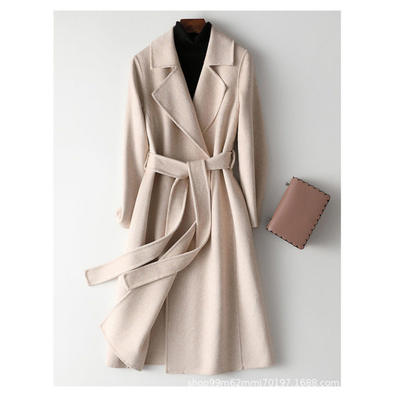 Women’s Woolen Coat Mid-Length Slim Lace-Up Jacket