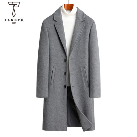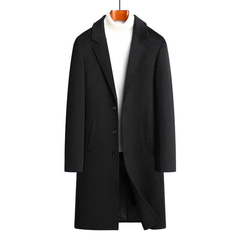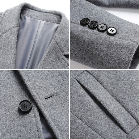 Men’s Long Woolen Overcoat Knee-Length Winter Jacket