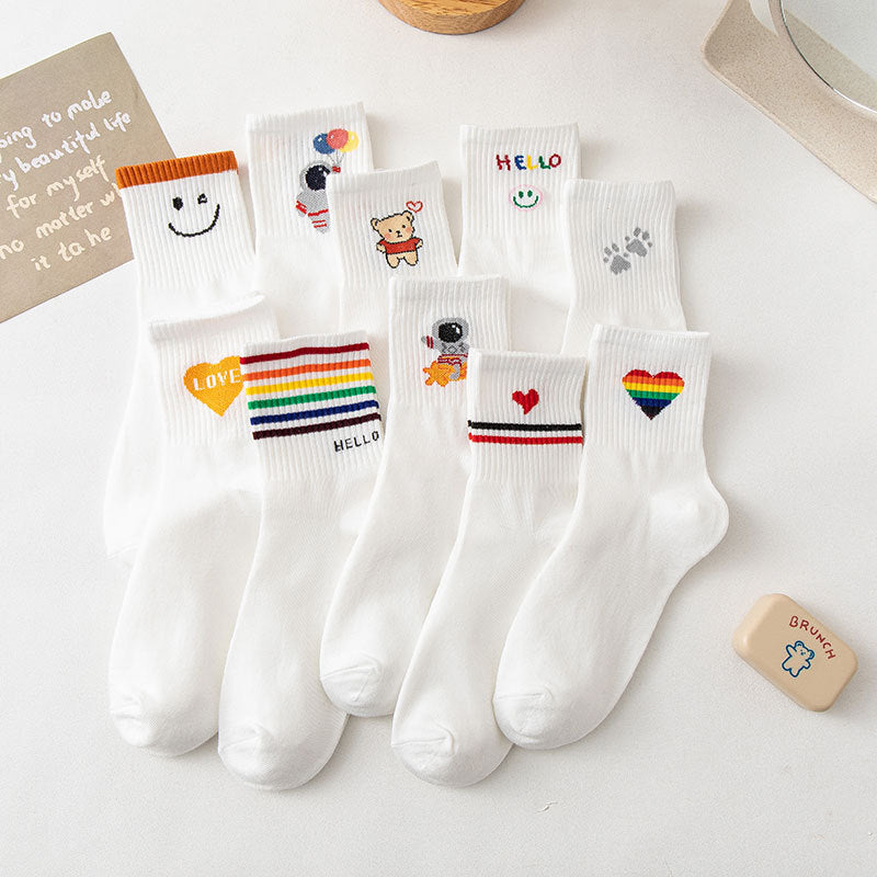 🌈 Bring the fun back to your feet! These Autumn/Winter Cartoon Bear Socks feature cute rainbow letters, hearts, and smiley details in a sporty Korean-style fit. They’re warm, funky, and full of personality.