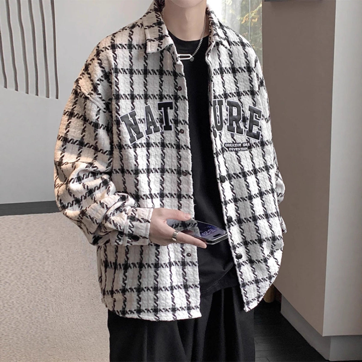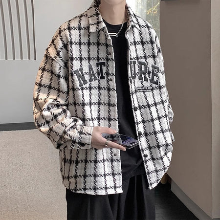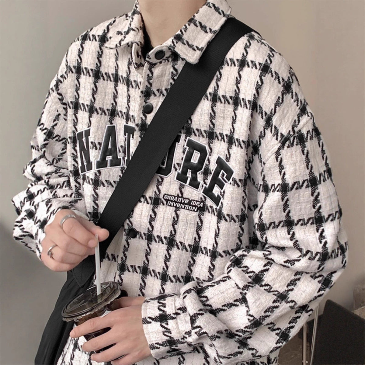 Stay ahead of the fashion curve with this houndstooth plaid men’s overshirt, a stylish nod to Chanel-inspired design. Perfect for autumn layering, it’s bold yet wearable for everyday looks.