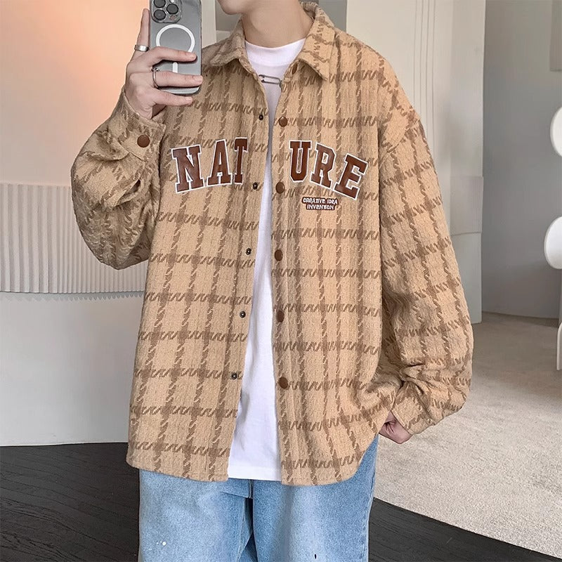 Trendy Houndstooth Plaid Overshirt Men’s Casual Jacket