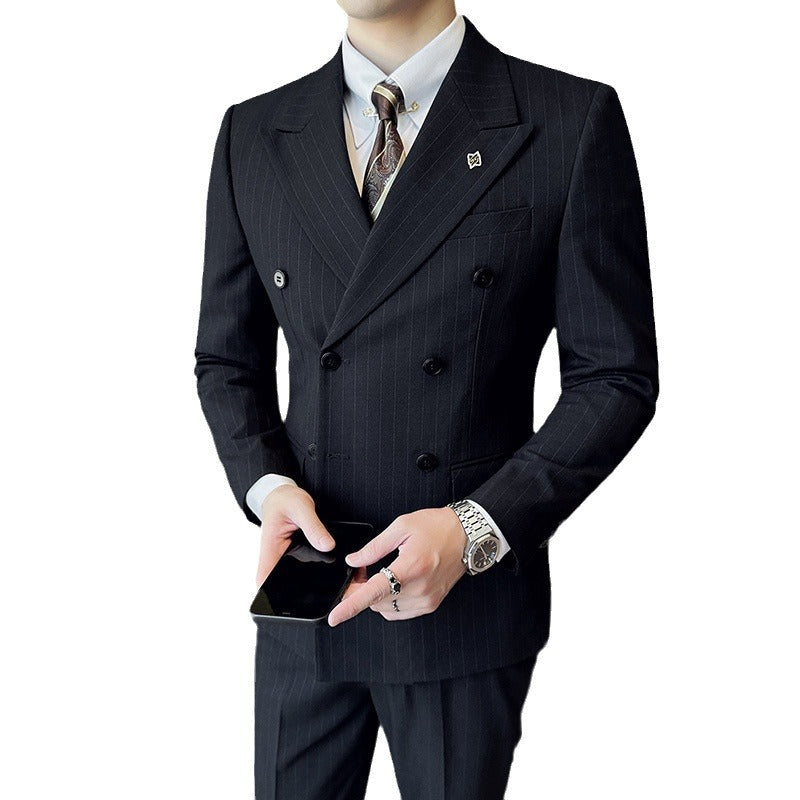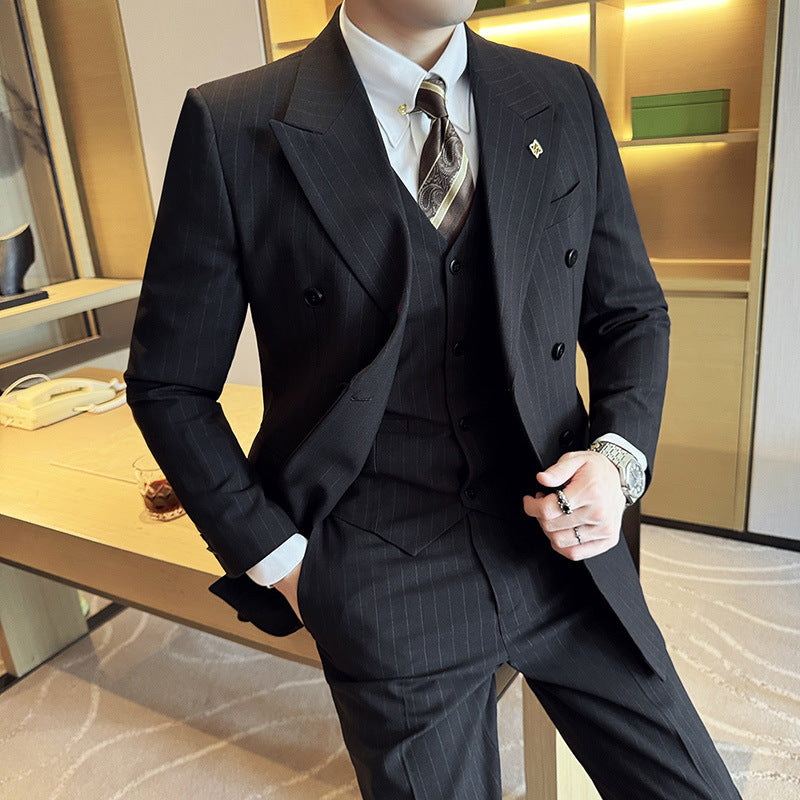 Men’s Double-Breasted Three-Piece Striped Wedding Suit