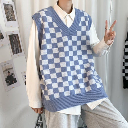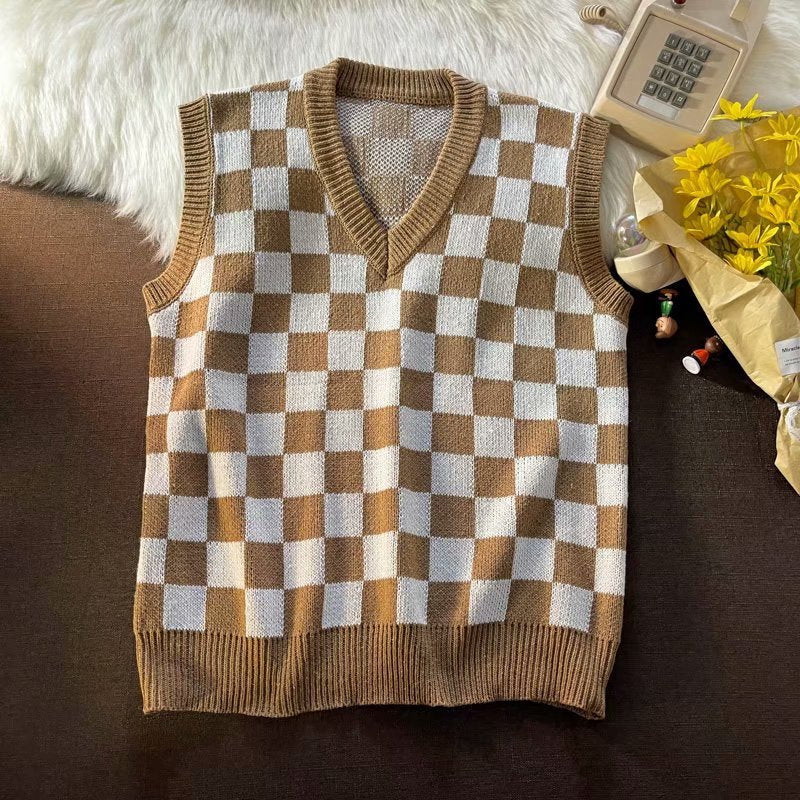 Sleeveless Sweater – Hong Kong Style Plaid Knit Vest