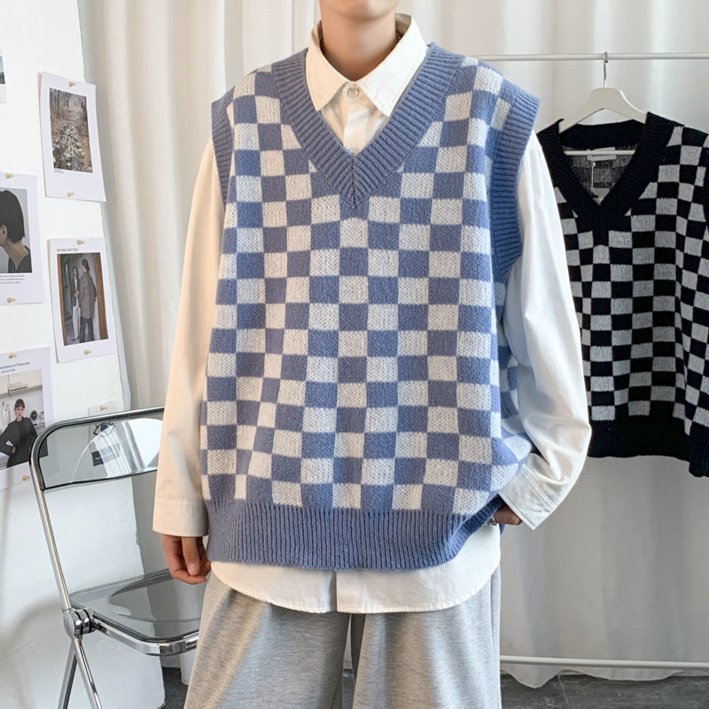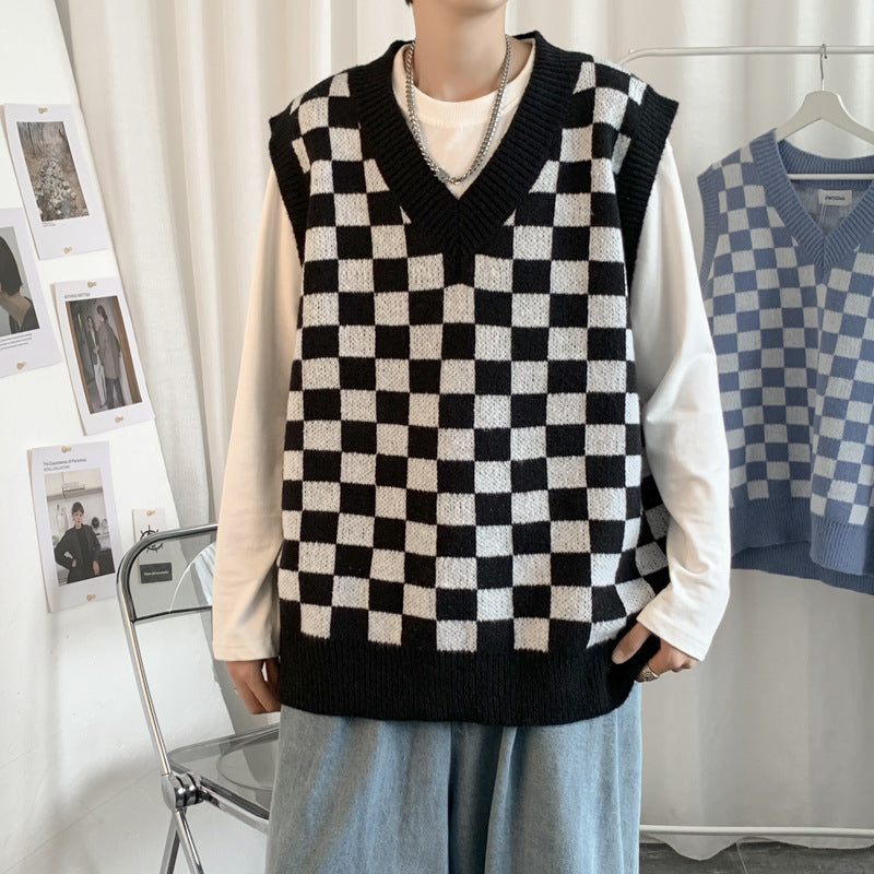 Bring out your youthful edge with this Hong Kong style sleeveless sweater vest, featuring a loose plaid design that feels casual and fashion-forward. Great for layering in autumn and early winter.