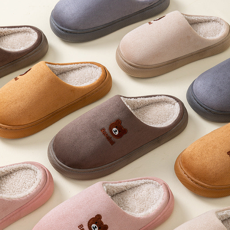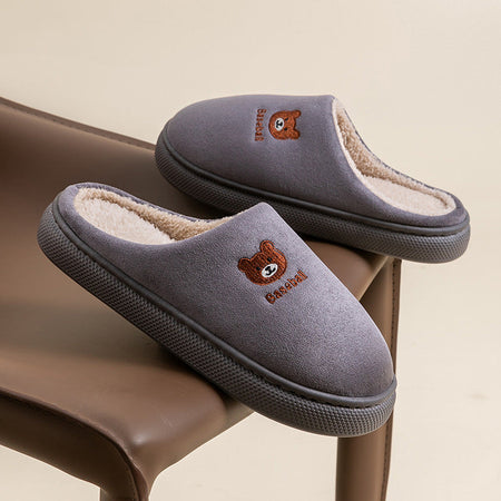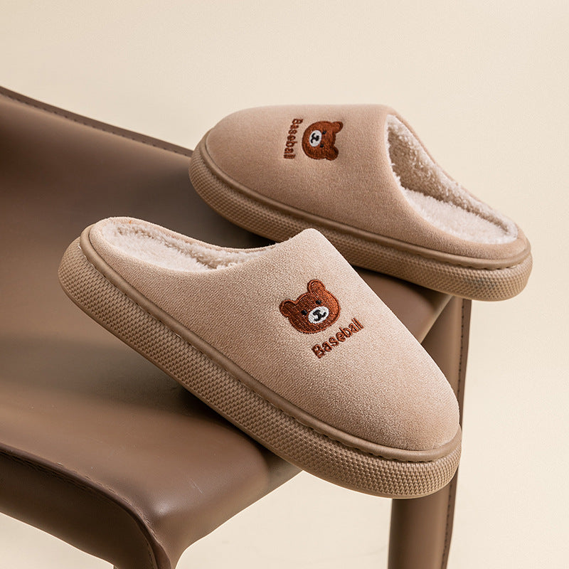 Design: Indoor slippers with cartoon bear embroidery, cute and stylish
