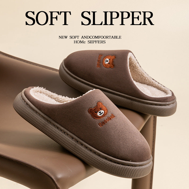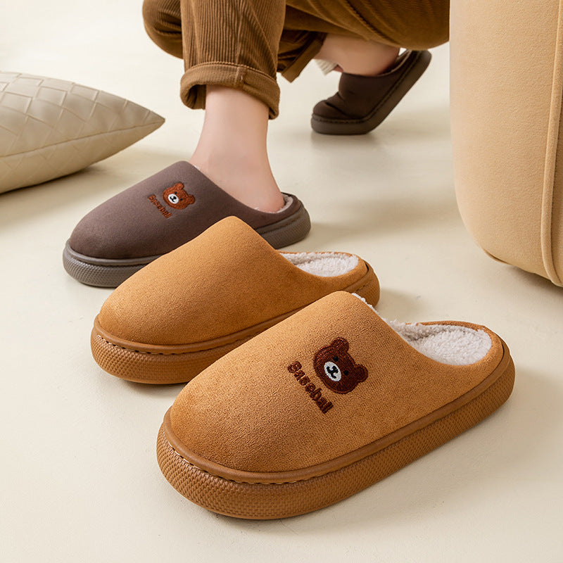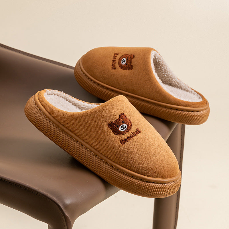 Autumn & Winter Plush Cotton Slippers – Cute Cartoon Bear Indoor