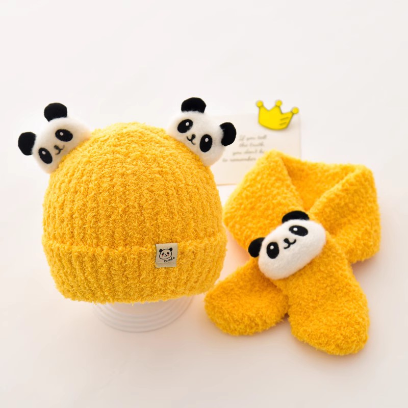 Baby Panda Knitted Scarf Hat Autumn Winter Ear ProtectionEar