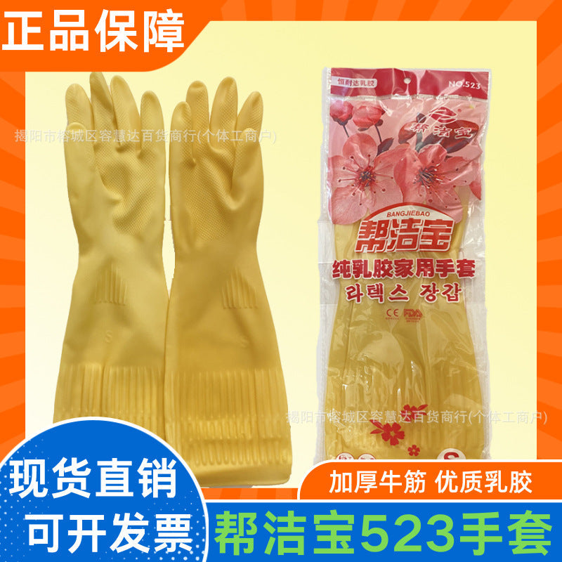 he Bangjiebao 523 Beef Tendon Latex Rubber Gloves are designed for heavy-duty household and kitchen use, providing superior protection, durability, and comfort 🧤. Made from high-quality latex with beef tendon reinforcement, these gloves are thickened, wear-resistant, and designed to withstand prolonged use without tearing.