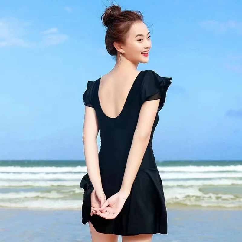 ☀️ Look stylish and confident this summer with the Barbie-inspired women’s swimsuit! Designed for hot spring and summer outings, it features a conservative yet trendy style with a short skirt, waist slimming effect, and belly coverage.