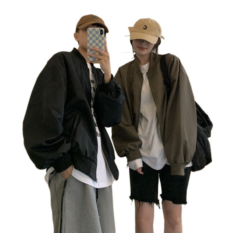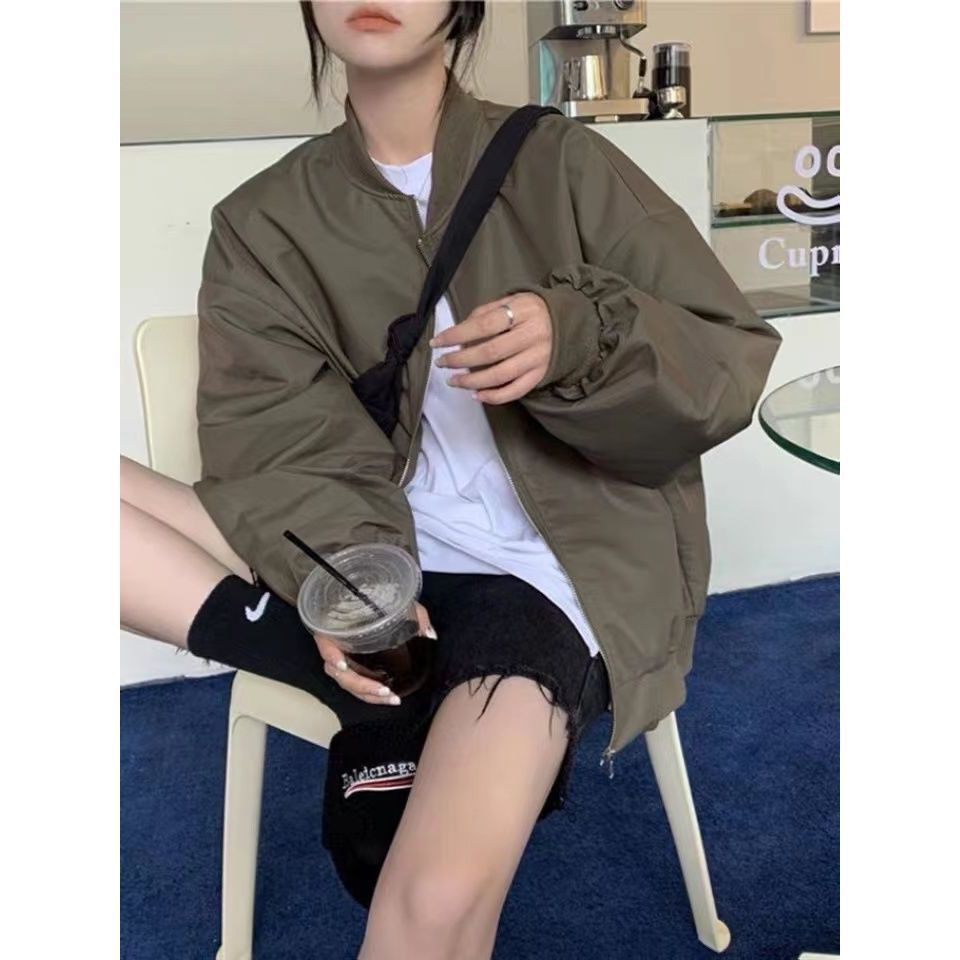 Bring retro charm to your everyday look with this baseball jacket ⚾🧥. Inspired by classic Hong Kong street fashion, it features a stand collar and relaxed BF-style fit. Lightweight and versatile, this jacket is perfect for spring and autumn styling with a trendy, casual edge.