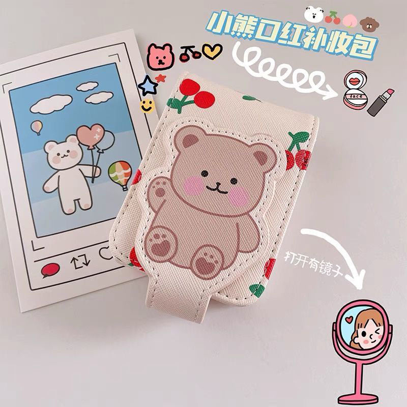Bear Lipstick Mini Cosmetic Bag with Mirror