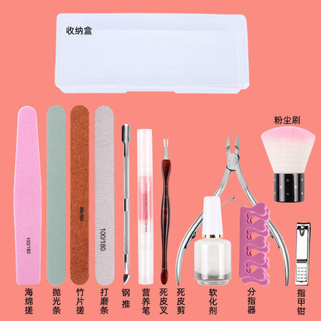 🛠️ Complete Set for Beginners: Includes barbed scissors, polishing sand strips, cuticle tools, and dead skin removers.