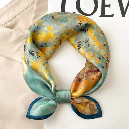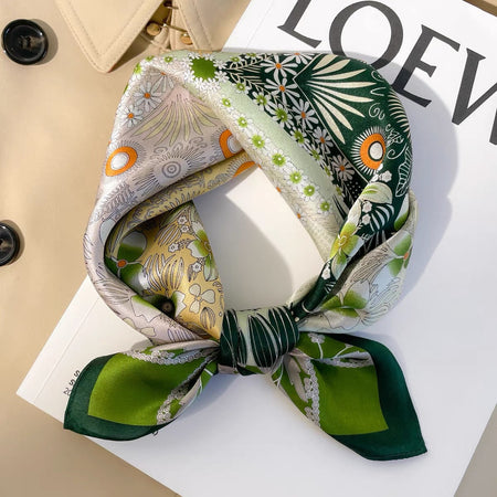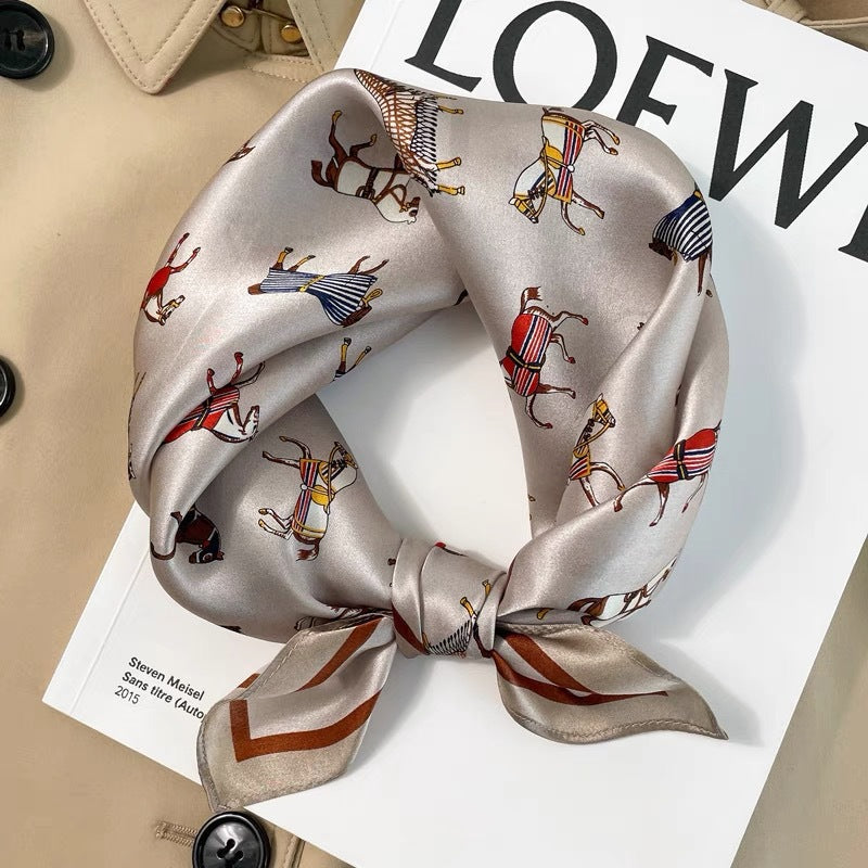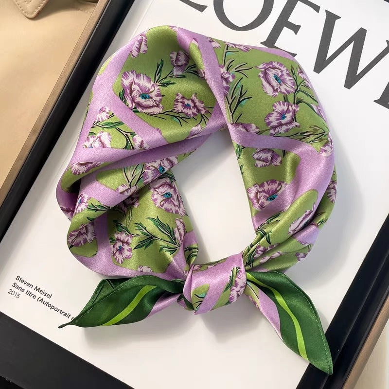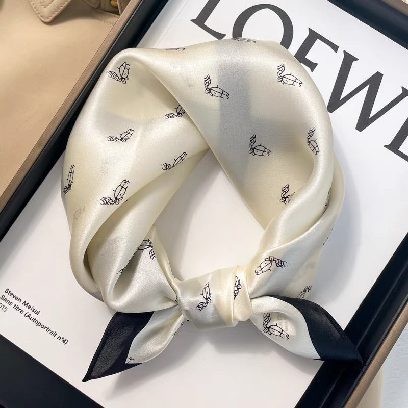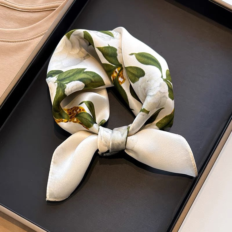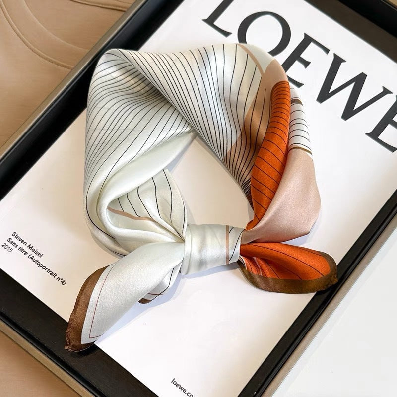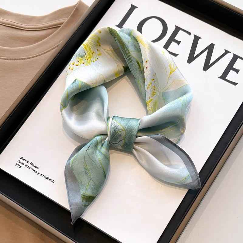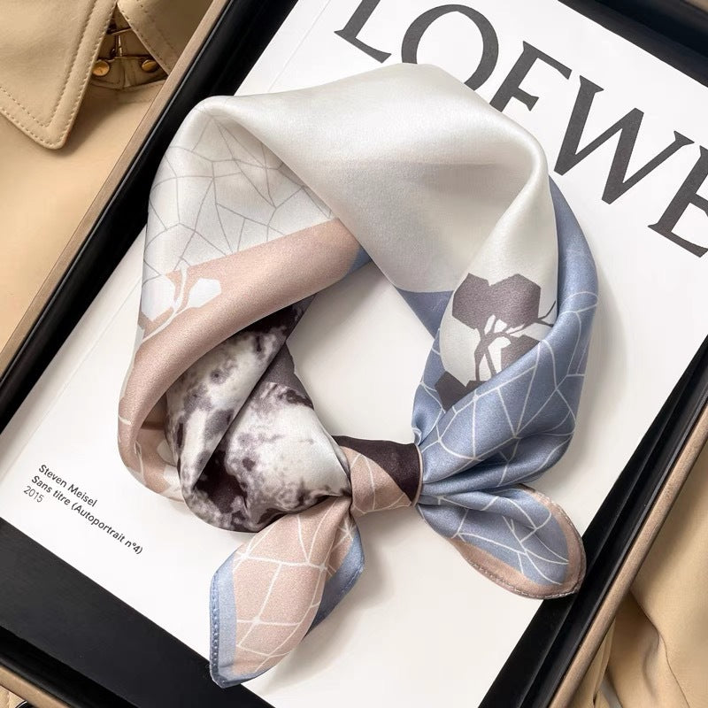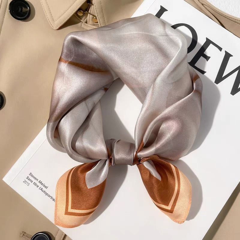 Enhance your spring and summer wardrobe with this beautiful beige silk square scarf, made from 100% Mulberry silk. Featuring a stylish Korean printed design, this 53cm scarf adds a delicate and sophisticated touch to any outfit. Whether draped around your neck or worn as a shawl, its luxurious texture and lightweight feel make it perfect for warmer days. A versatile accessory that complements both casual and formal looks, it’s the perfect decorative piece to elevate your style. 🌿