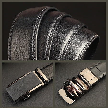 Men's Leather Belt ā Two-Layer Cowhide Auto Buckle