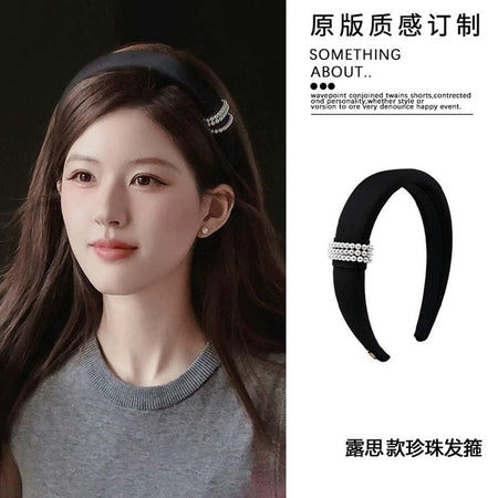 ⚪⚫ Monochrome magic meets luxe pearls in this satin headband, perfect for elevated everyday looks.