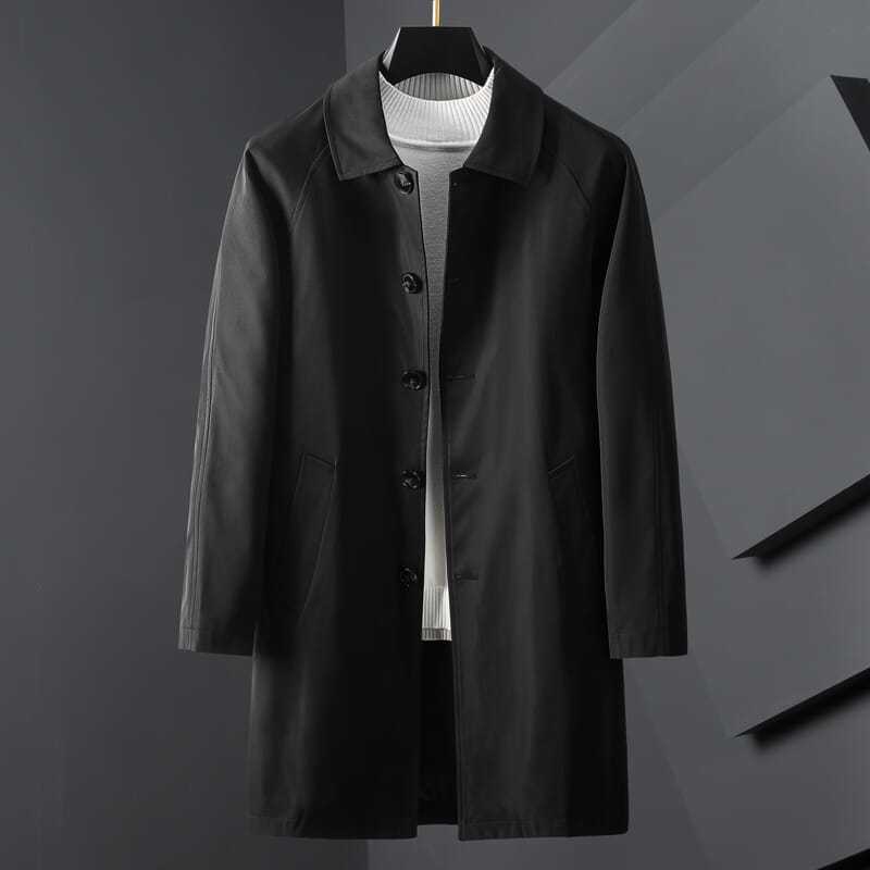 Step out in timeless elegance with the Men’s Black Mid-Length Windbreaker, designed for autumn and winter wear. This versatile jacket combines British sophistication with casual comfort. 🍂🖤
