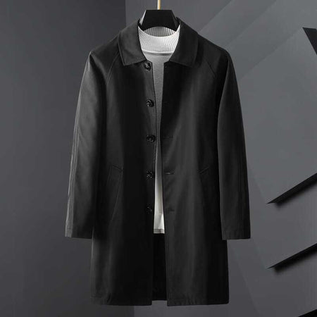 Men’s Black Mid-Length Windbreaker Autumn Winter Jacket