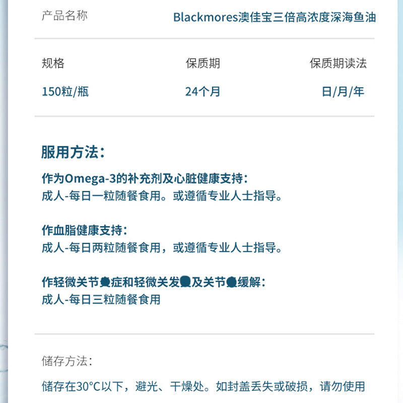 Support heart, brain, and overall wellness with Blackmores High Purity Deep Sea Fish Oil 🐟💊. Each capsule contains DHA and Omega-3 fatty acids, delivering essential nutrients that help maintain healthy blood lipids, cardiovascular function, and cognitive health. With 150 capsules in each bottle, it provides convenient long-term supplementation for adults seeking top-quality fish oil.