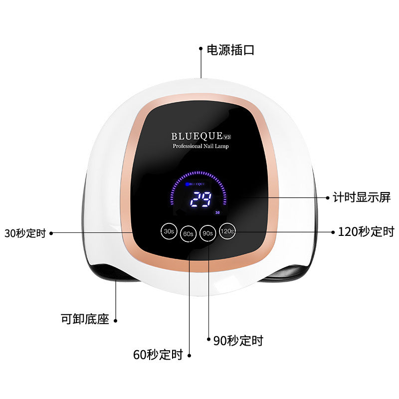 Upgrade your nail care routine with the BLUEQUE 168W LED UV nail lamp, a professional phototherapy lamp designed for fast, efficient, and even curing of gel nails π β¨. Featuring a modern LCD display and touch screen, this nail machine makes home or salon nail curing effortless and precise.