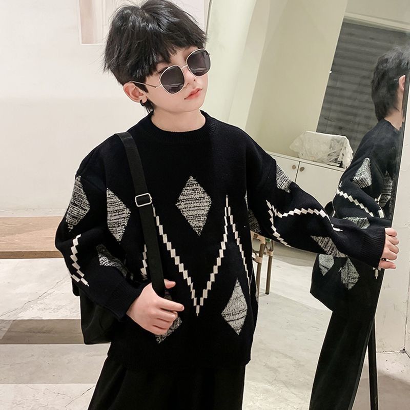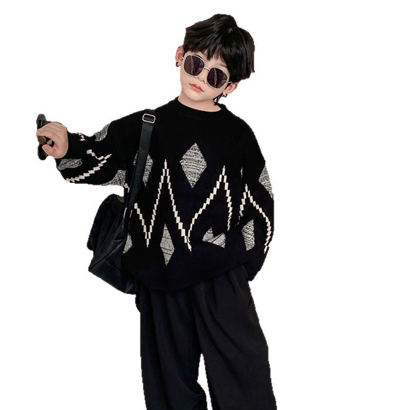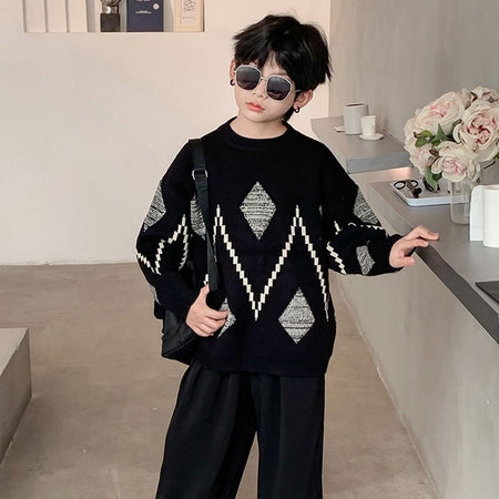 Made from soft, breathable knit fabric, it provides cozy warmth without feeling heavy. The classic round-neck design makes it easy to layer over shirts or t-shirts, while the diamond-patterned texture adds a trendy, eye-catching detail that elevates any outfit.