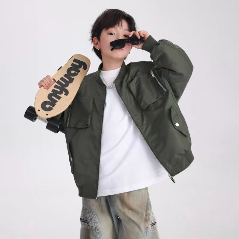 Cool and comfortable, this boys’ 2025 aviator baseball jacket brings sporty style to autumn wardrobes. Its versatile design works for school, sports, or casual outings.