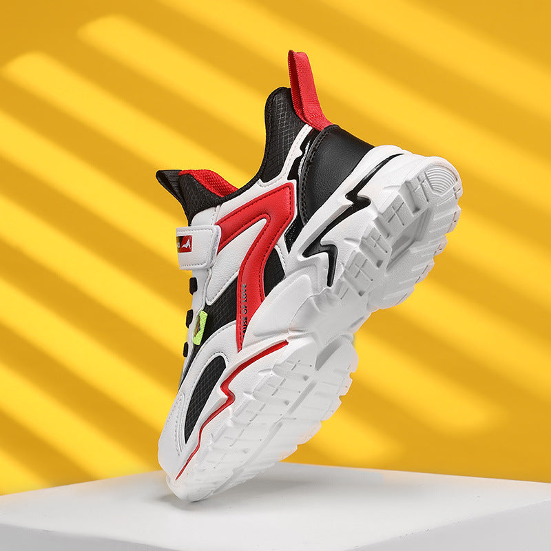 Boys’ Autumn Mesh Leather Sneakers Soft Sole Basketball Shoes