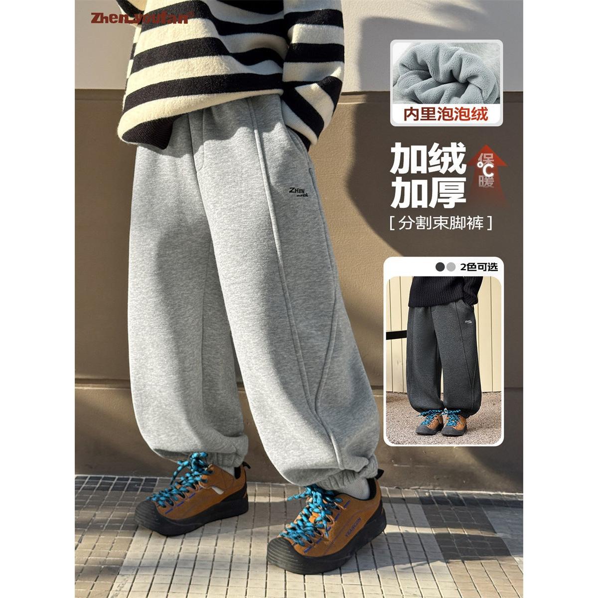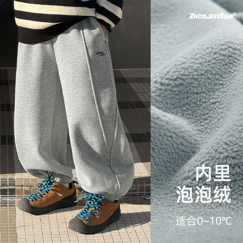 Boys Bubble Velvet Winter Pants 2025 Thickened Sweatpants