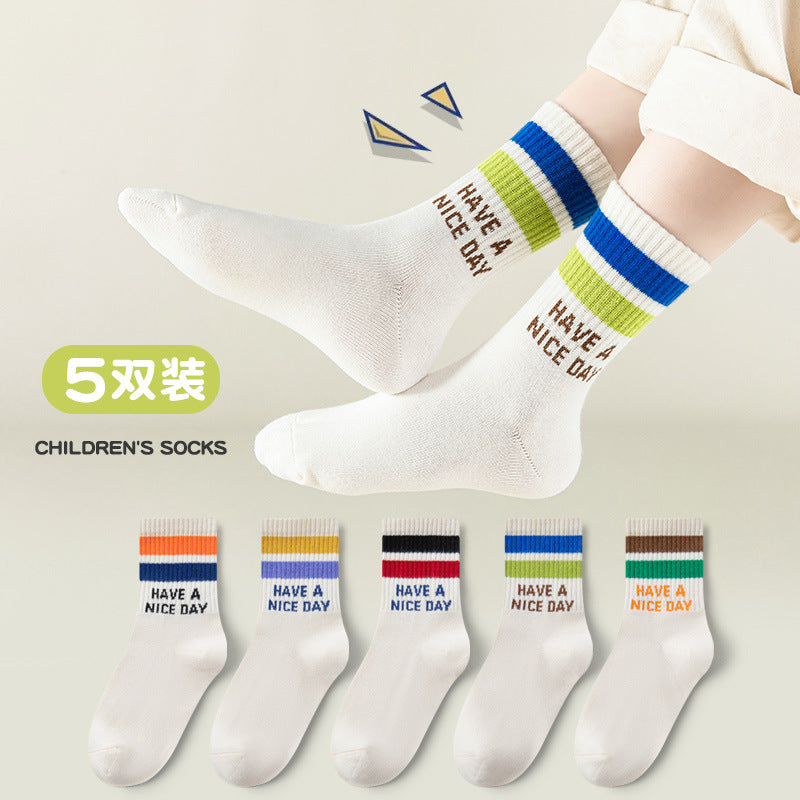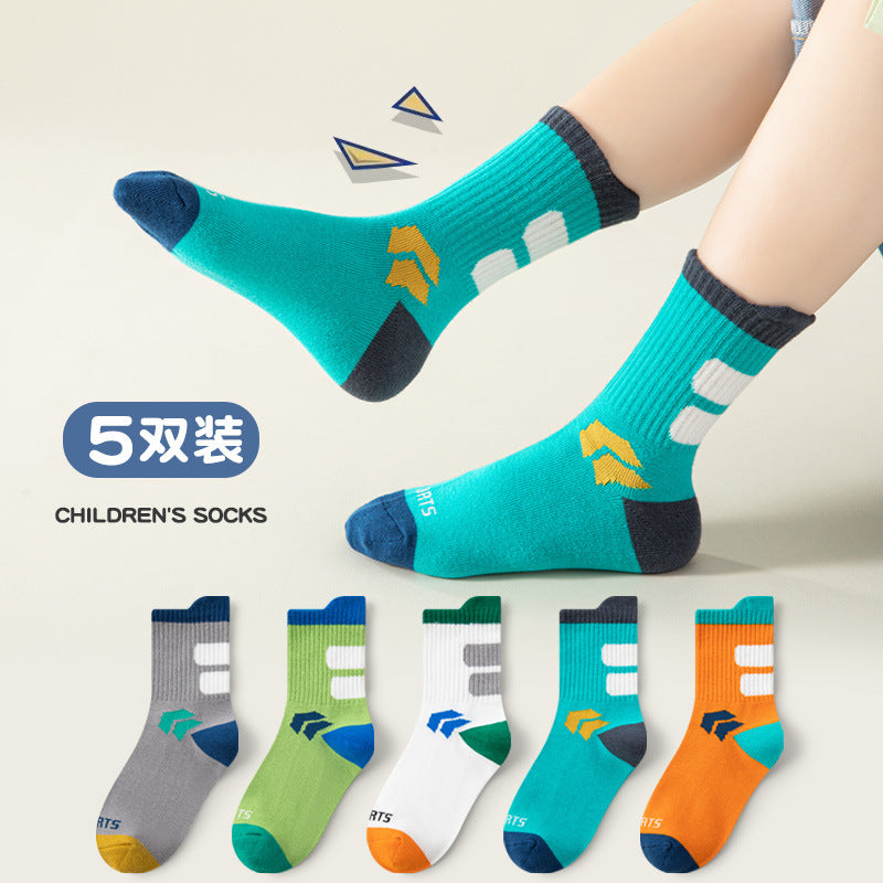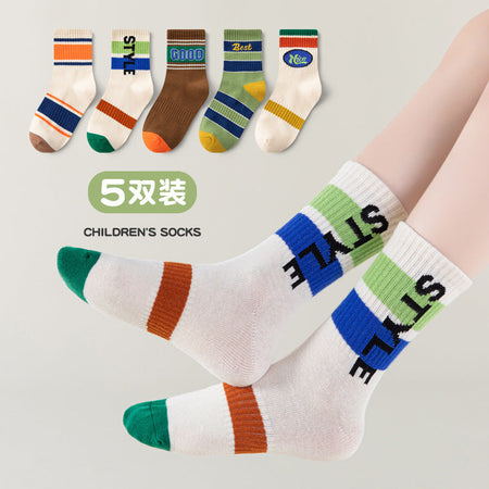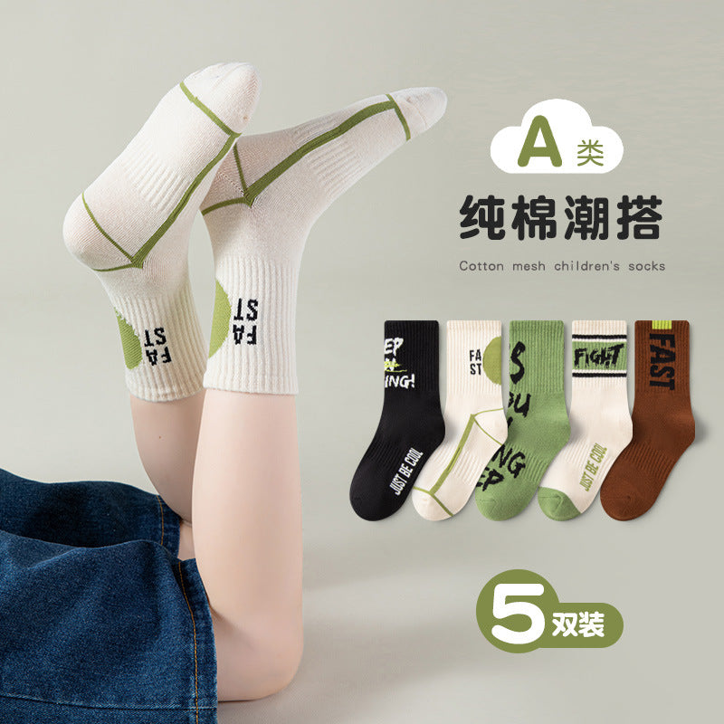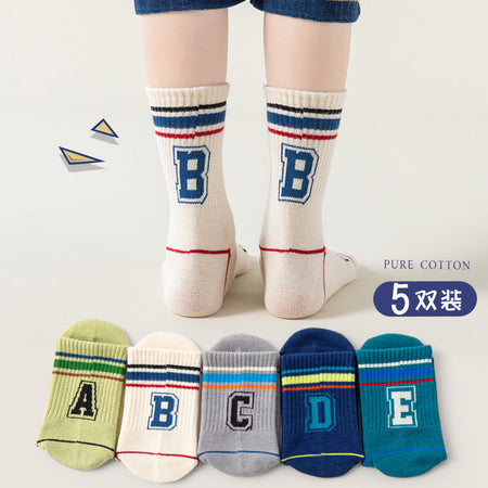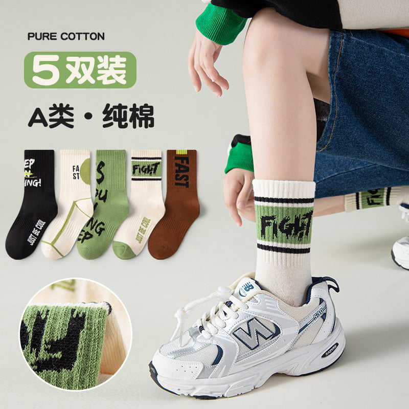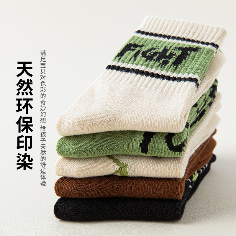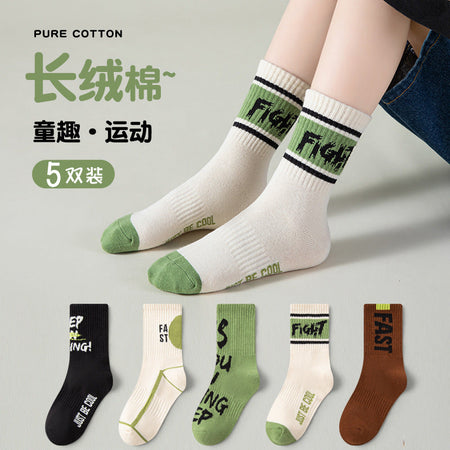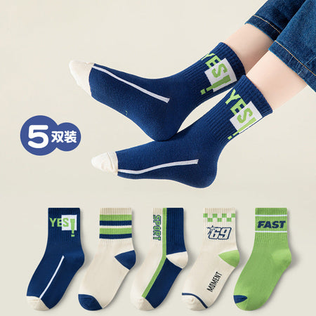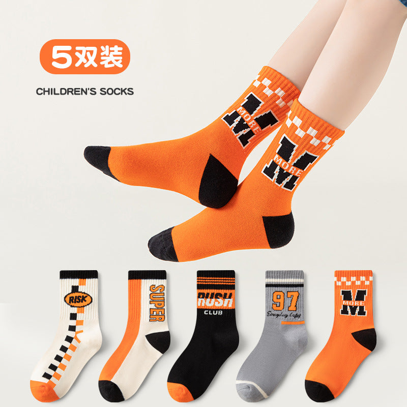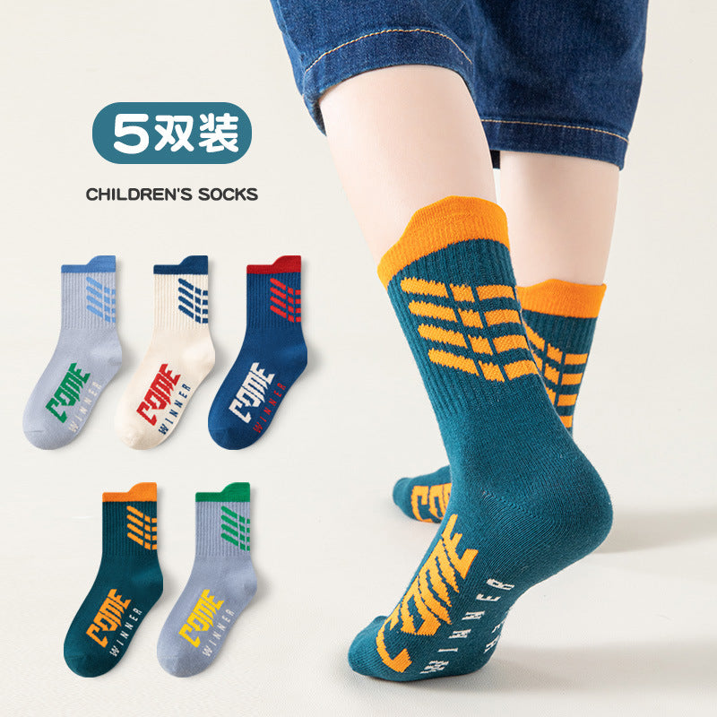 Boys’ Cotton Mid-Calf Socks – Trendy Autumn Sports Style
