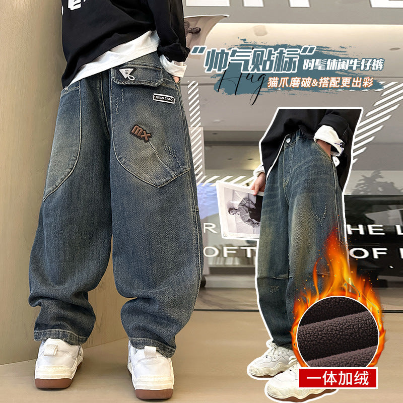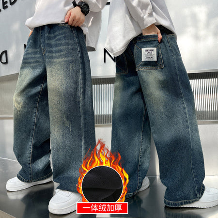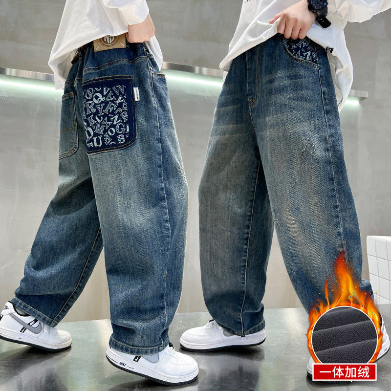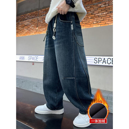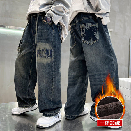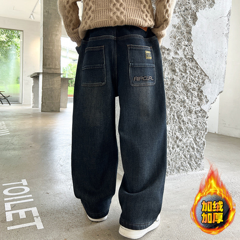 Boys Fleece Lined Denim Pants Winter 2025 Big Kids