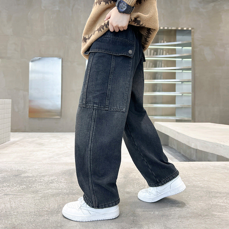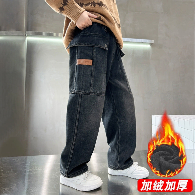 Boys Fleece Lined Jeans Autumn Winter 2025 Long Pants
