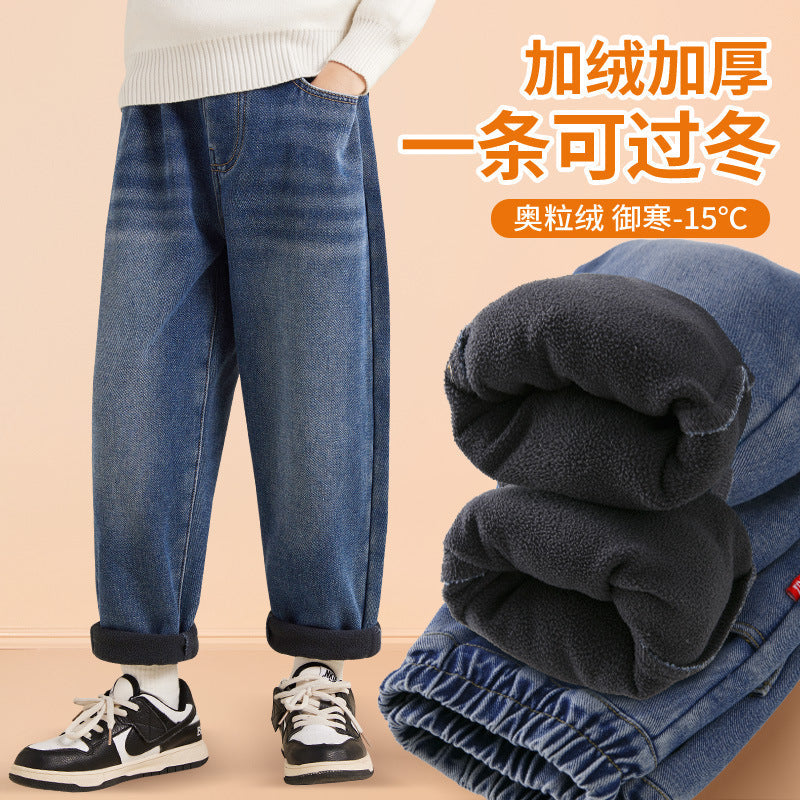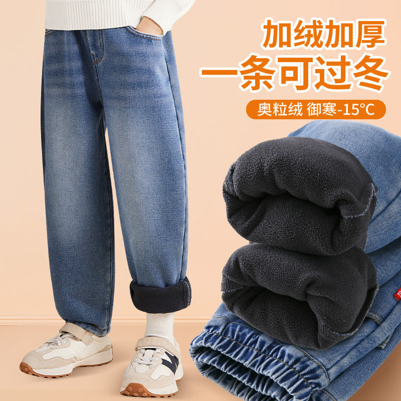 Boys Fleece Lined Jogger Jeans Winter 2025 Long Pants