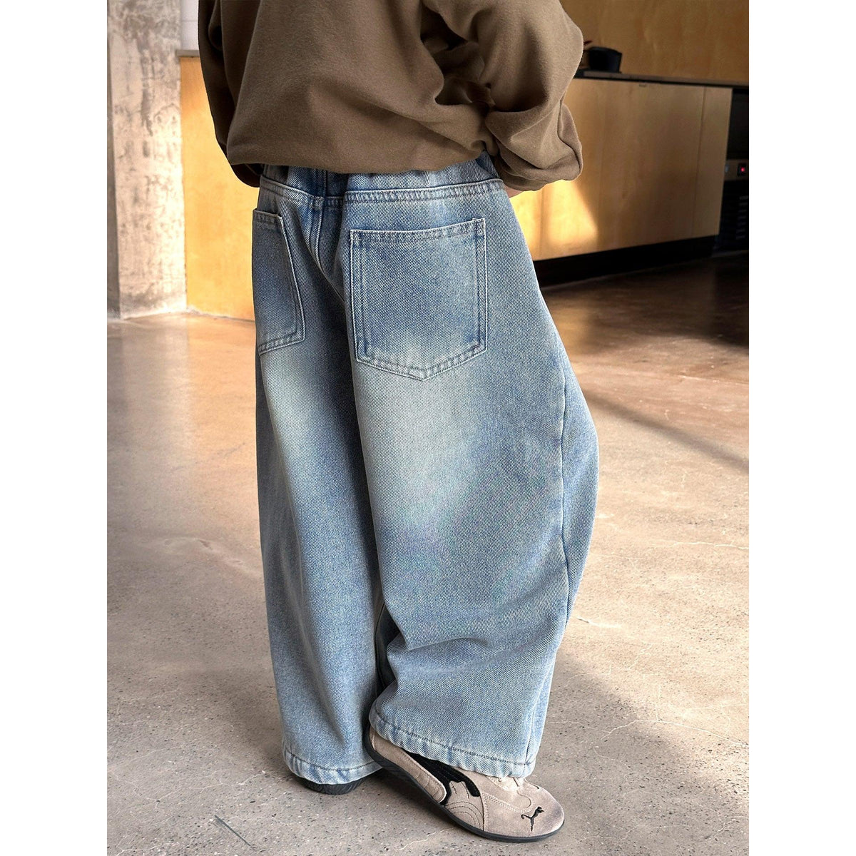 Boys’ Fleece-Lined Thick Jeans Winter Casual Pants