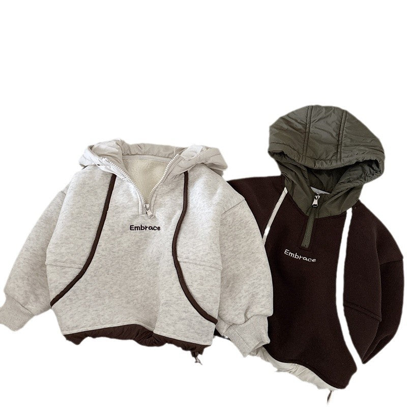 Boys' Hooded Fleece Sweatshirt β Autumn & Winter Korean Style