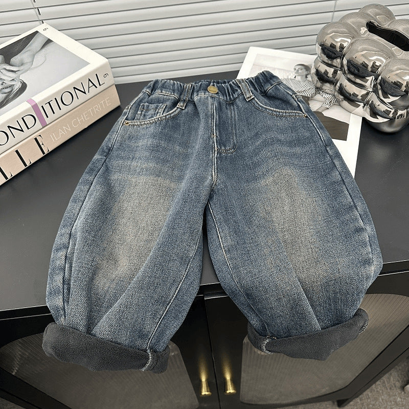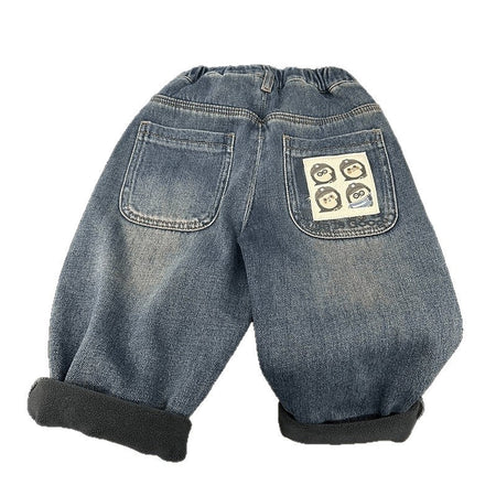 Boys Korean Style Fleece Lined Harem Jeans Autumn Winter