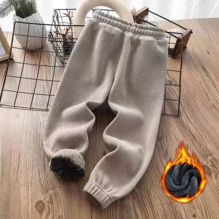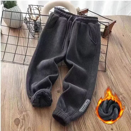 Boys' Fleece-Lined Pants Winter Warm Sports Trousers