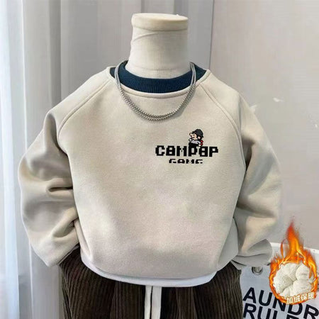 Boys’ Plush Cartoon Sweatshirt – Autumn Winter Warm