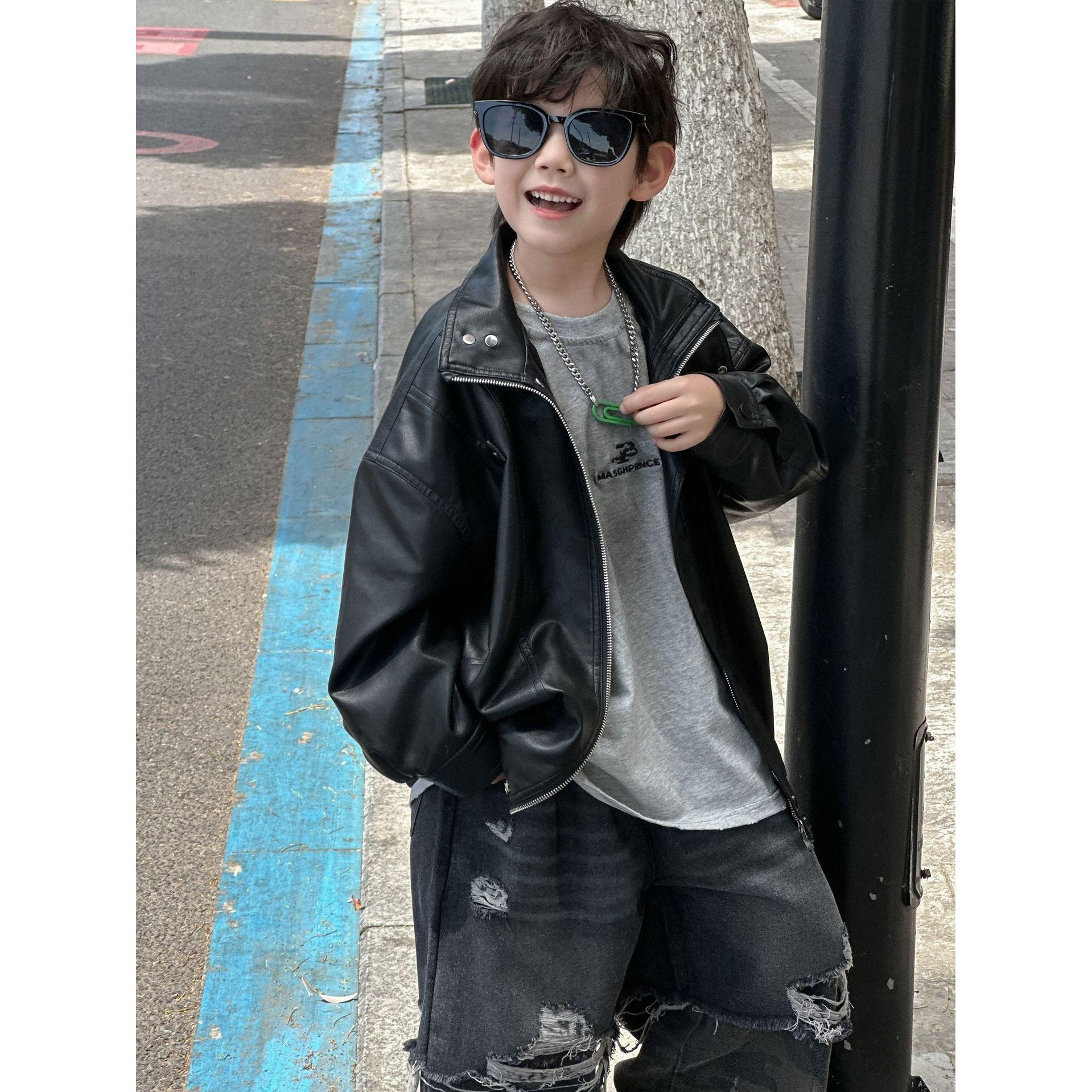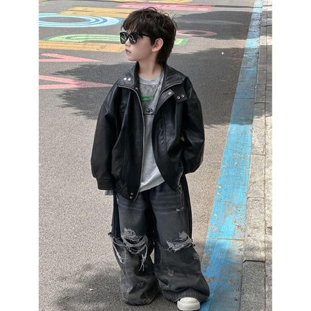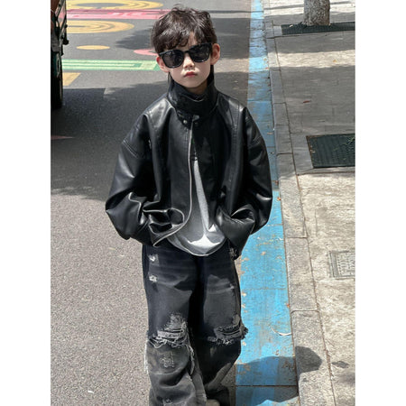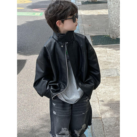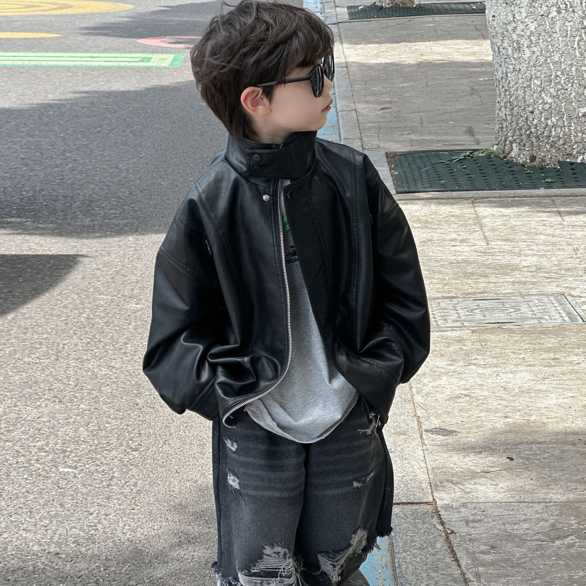 Made with a soft leather-style outer material, the jacket feels smooth and comfortable while helping block cool winds and dust. The bomber jacket design gives a classic American retro look that never goes out of style, making it a popular choice for older kids and parents who prefer trendy yet practical clothing.