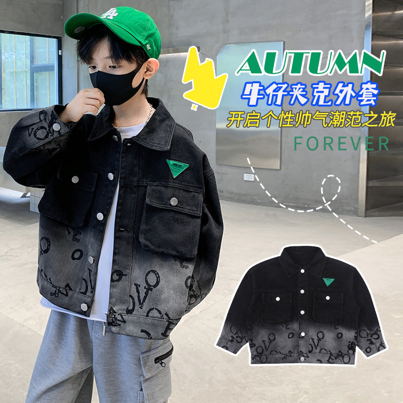 Let your boy stand out with this gradient letters denim coat, crafted for spring and autumn 2024. With its western-style casual design, this jacket adds a stylish edge to any outfit. 👕